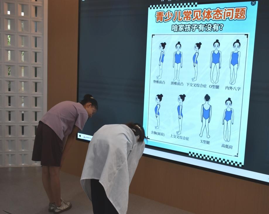 运动康复专业 2023 级周心丽则将五禽戏打造成“虎跃鹿鸣,戏趣童心”课堂,引导孩子们模仿虎之威猛、鹿之安舒,在游戏中感受传统导引术的魅力,播撒健康理念。在“身体小侦探,姿势大发现” 体态评估课上,她又化身 “健康卫士”,帮孩子们认识良好体态的重要性。体育教育专业 2024 级(4)班夏康晨开展“健骨凌云少年志,乘风破浪体育魂” 体育知识宣传,体育超越简单的身体活动,成为塑造体魄、培养意志、传递健康理念的桥梁。