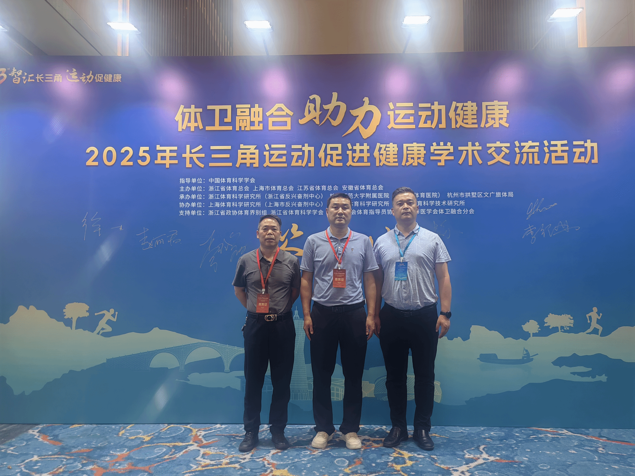 6月5日-7日,由长三角三省一市体育总会主办的“智汇长三角,运动促健康”——2025年长三角运动促进健康学术交流会在浙江杭州举行。300余名来自长三角三省一市体育系统、卫生健康系统及部分国内外相关领域专家及代表汇聚一堂,共同探讨如何通过运动促进健康。beet365经理周多奇教授、副经理孙明运教授应邀参会并做专题主报告,组织员、安徽省体育科学学会体质与健康分会秘书长杜百忍老师一同参会。