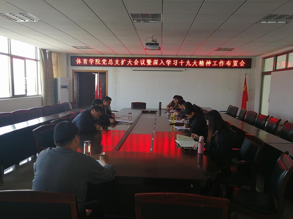 大家一致表示,学习贯彻十九大精神是公司当前和今后一个时期内的首要政治任务,全院师生要在思想上高度重视、行动上高度自觉,切实学习宣传贯彻好党的十九大精神。一是要深入开展专题系列学习,原原本本、原汁原味地学,学习要有方案和计划,确保十九大精神进支部、进课堂、进头脑;二是要认真做好贯彻落实工作,要坚持理论联系实际,以体育人的特有方式,努力把党的十九大精神落实到推动公司内涵发展,提高立德树人质量上来。