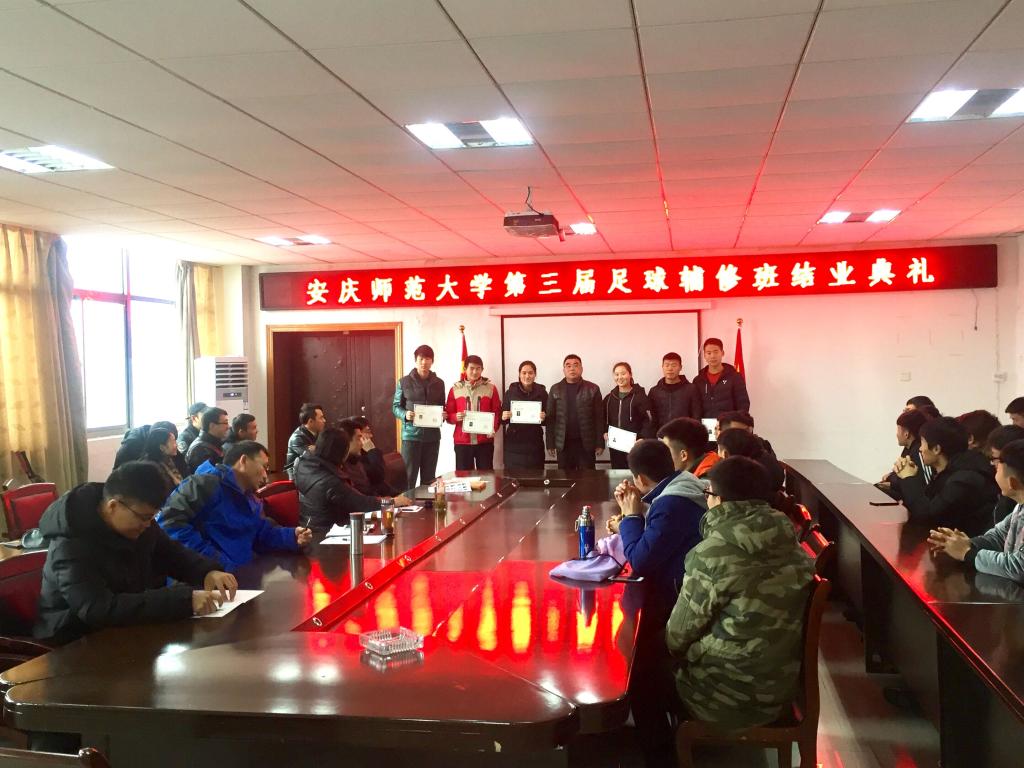 1月5日下午,公司第三届足球辅修班结业典礼在龙山校区体育馆会议室举行,74名足球辅修班同学顺利结业。副经理章翔、球类教研室足球专项老师、足球辅修班辅导员及足球辅修班全体同学参加典礼。会议由球类教研室主任、校园足球发展研究中心副主任林秋菊主持。