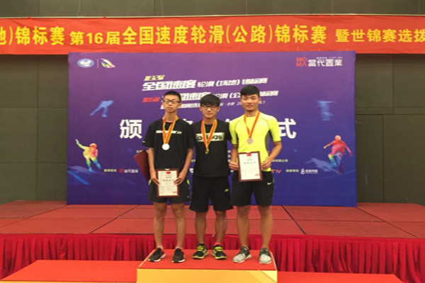 公司学子沈俊鑫包揽全国速度轮滑(场地)锦标赛高校男子项目三项冠军