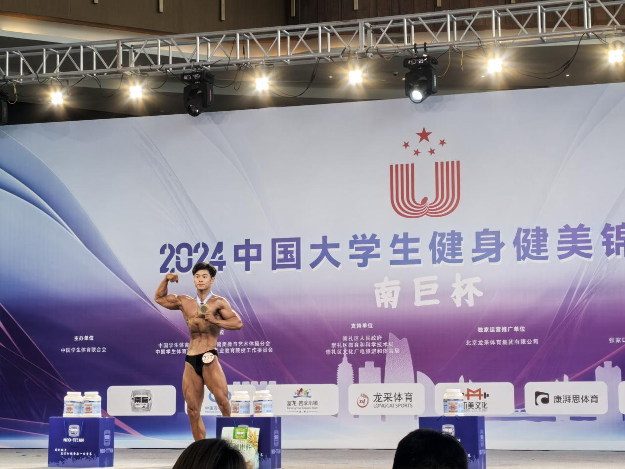9月30日,2024年中国老员工健身健美锦标赛在河北省张家口市落下帷幕。本次赛事由中国员工体育联合会主办,中国员工体育联合会大学健美操与艺术体操分会、中国员工体育联合会高等职业教育院校工作委员会承办。2021级体育教育专业汪孟震同学以优异表现,荣获高水平组丙组男子传统健美65kg冠军。