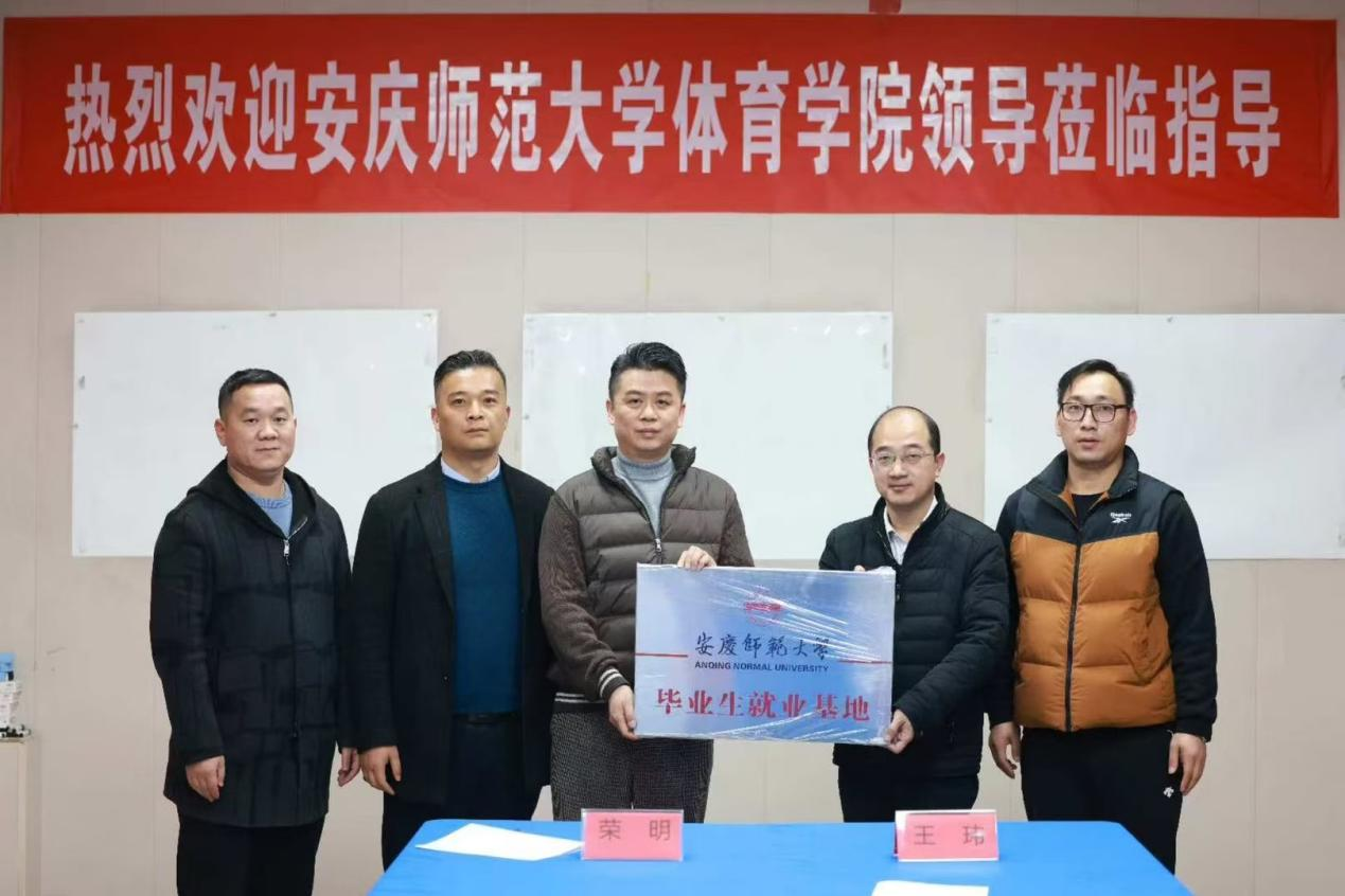 满分体育人力资源总经理邱明带领体育公司一行参观了公司各校区教学设施和场馆,双方签订就业基地协议并举行了授牌仪式。