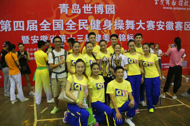 本次大赛是由国家体育总局体操运动管理中心、中国健美操协会和全国全民健身操舞推广委员会共同主办,由安徽省健美操协会承办。省内外多所高校、中小学及健身机构近一千余人报名参加了比赛,竞争非常激烈。而公司健美操健儿发挥极其出色,取得了可喜成绩,最终一举夺得了三个团体奖、八个单项特等奖和六个单项一等奖。其中2013级体育教育专业健美操专选班在有氧舞蹈四级大学组、社会组以及广场舞规定套路三项比赛中共获三个特等奖;2013级体育表演专业1班在街舞自编和运动舞蹈两项比赛中共获两个特等奖;2013级体育表演专业2班在有氧舞蹈二级和有氧健身操舞自选两项比赛中共获两个特等奖,并荣获轻器械自选、轻器械规定动作六级项目一等奖;2014级体育表演专业两支代表队在校园青春健身操创造奇迹项目中分获特等奖和一等奖;2012级体育表演专业健美操专选班在街舞自编项目中荣获一等奖。