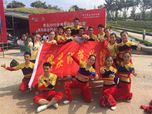 9月17日,beet365健美操队在潮芳和王云辉两位老师的带领下,参加了在青岛世博园举办的2015年世界休闲体育大会“青岛世博园”第四届全国全民健身操舞大赛总决赛并最终夺得了五个特等奖、五个一等奖等多个奖项。