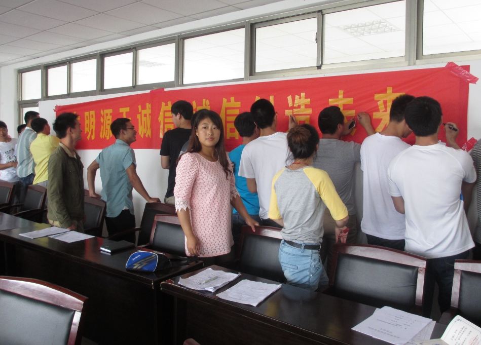 公司员工资助专管老师贾涛在会上宣读了《关于做好2014届生源地信用助学贷款毕业生还款确认工作的通知》,并详细说明了国家开发银行贷款和农村信用社贷款的还款确认以及延期还款的办理事项。会上,大家纷纷向负责贷款还款办理事项的有关同学咨询了如何还款、贷款利息、办理手续等问题。现场气氛活跃。最后,大家纷纷在“文明源于诚信,诚信创造未来”的条幅上签字。
