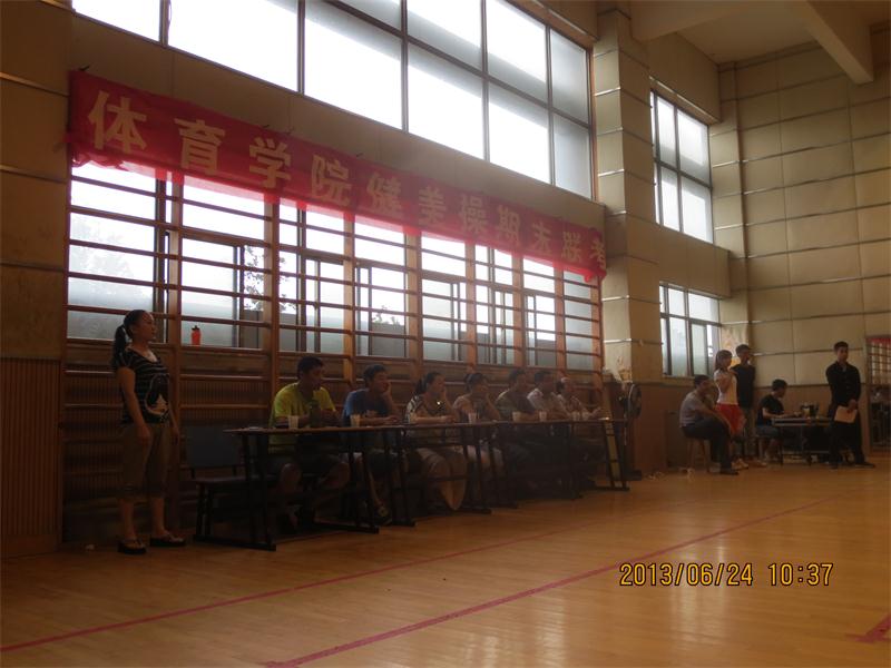 6月24日,在潮芳老师的精心组织下,2011级体育教育和体育艺术表演两个专业健美操专项的所有员工,在健美操馆参加了健美操课程术科部分的期末考试。体育公司党政领导应邀观摩了本次考试,体武教研室的相关老师担任本次考试的评委。