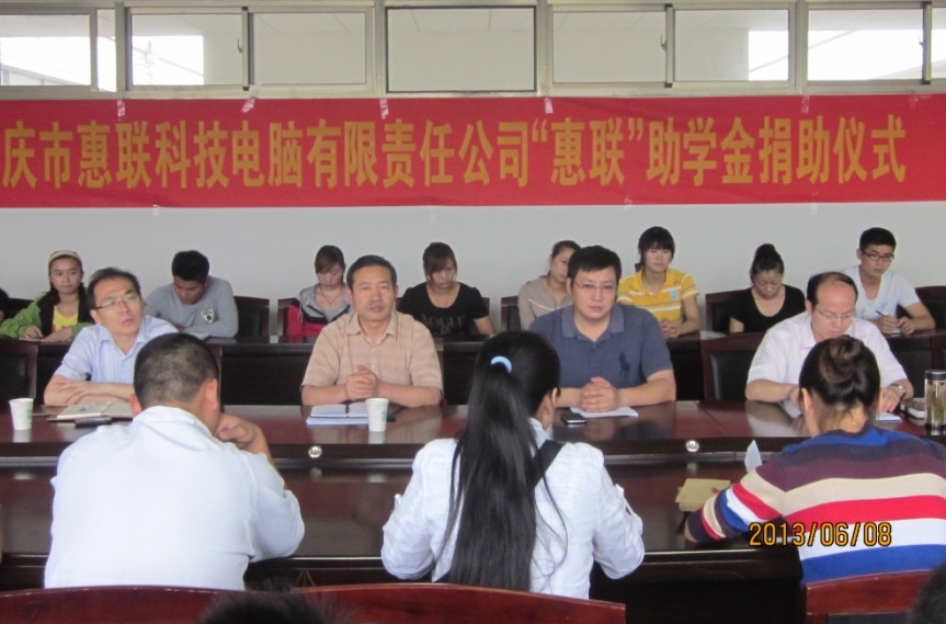 安庆市惠联科技电脑有限责任公司董事长兼总经理余贤良先生在讲话中表示,捐资助学是一项功在当代、利在千秋的事业,希望通过公司捐资助学的这一举措,能带动更多的单位、企业和社会各界朋友对教育事业倾注更多的爱心和支持。他希望受助的同学把贫困化作精神财富,作为宝贵经历,把报恩之心、感激之情化为成才之志、发奋之源,以优异的成绩向党和政府汇报,以自己的聪明才智报效祖国、报答父母和社会的关爱。