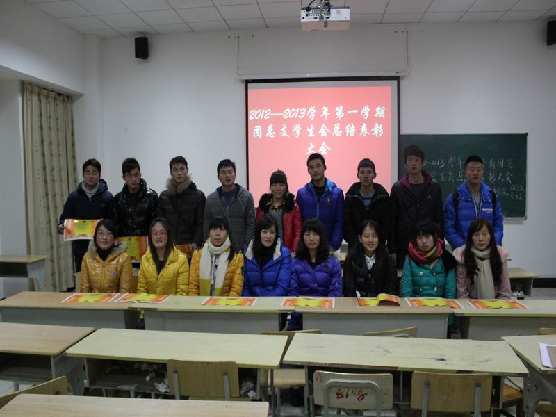 1月10日下午,beet365团总支员工会在体育馆多媒体教室召开2012—2013学年第一学期团学工作总结表彰大会。院团总支副书记、员工工作办公室副主任鲁雷,团总支汪洋老师出席会议,院员工会全体成员与各班级团干参加了大会。会议由院员工会主席丁立同学主持。