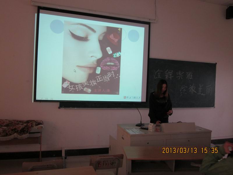 为了丰富公司女生的礼仪文化知识,引领女生塑造美的时尚,公司于女生节当天在体育馆多媒体教室举办了一场女性礼仪知识讲座。讲座内容涉及彩妆的选购和对女性的影响,简单的化妆技巧,女性皮肤的护养,衣式搭配和社交礼仪等。为了使在场的女生更深一步的了解女性美,女生部成员现场给一名女生进行了美丽大变身,变身后其姣好的面容,时尚的穿着,由内而外散发的气质获得了在场女生由衷的赞美。