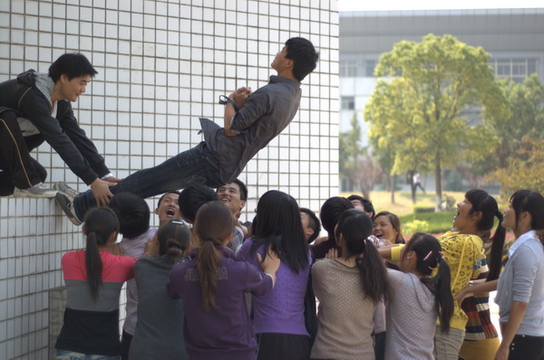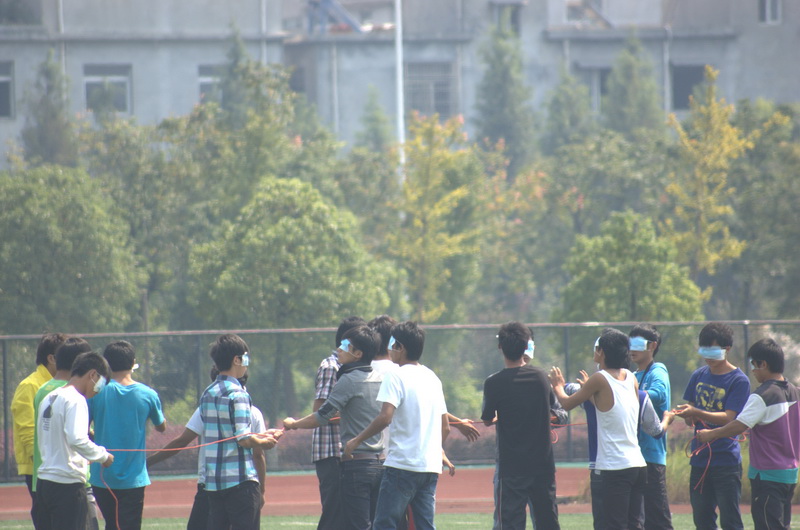 上午8点训练活动开始。在进行简短的队列调整和训练之后,培训师张书军老师向参训同学指出了拓展训练的意义与重要性,并对同学们提出了相关要求。本次拓展训练共有四项培训内容,分别是硫酸河、雷阵、信任背摔和盲人接阵。每个项目都包括体验、分享、交流、整合和应用这五个环节,让参加者自己去发现、归纳体验过程中提供的知识,达到自我教育的目的。在四项任务中,硫酸河的任务难度最大,在有限的时间里让全体同学安全通过硫酸河需要正确的决策、团体的协作和迅速的反应,虽然有的团队因为协作不够合理,一名同学都没能通过,在过程中,部分同学还因为意见不一致出现激烈的争执,但经过体验后的分享和交流,大家都能够心平气和的去讨论刚才活动中的不足和自己的感受,也增进了彼此的交流和了解。活动中,呼声最高的当属信任背摔,这个项目在素质拓展训练中属于传统的经典项目,很多同学在之前都有所了解,但面对亲身体验,大家还是兴奋不已,在确保安全的前提下,各组都有条不紊的进行。活动最后,同学们纷纷踊跃表达了自己对训练的理解,大家一致认为活动给同学们带来欢乐的同时,也达到了素质拓展的目的。