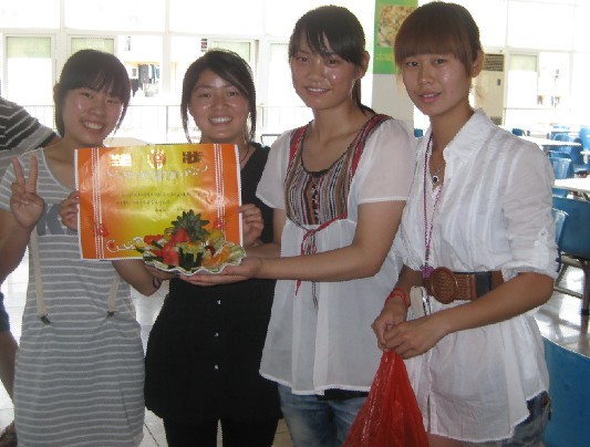 本次大赛以寝室为单位报名参赛,比赛共吸引了来自不同年级不同专业的几十个寝室报名参加。经过前期初赛的激烈角逐,最终入围决赛是4A118、4A122、4A129、4B128、4B130、6A119、6A124等七个寝室的代表队。进入决赛的七个寝室通过抽牌选择水果,作为他们的材料。通过想象力与创造力的充分发挥,队员们之间的团结协作,一幅幅精美的水果作品被一一呈现。选手们的雕工真可堪称“鬼斧神工”,有雕花,有海豚,有笑脸,同学们利用用他们灵巧的双手将有限的水果创造成一件件色彩鲜艳、别出心裁、极富个性的水果拼盘作品。