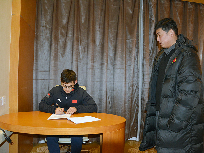 慰问结束后,为了让沈俊鑫同学全心全意备战2022年北京冬奥会,同时能顺利完成学业,公司送考上门,最终在专业老师的监考下,沈俊鑫同学顺利完成了本学期期末相关课程的考试。(文/图 程启平)