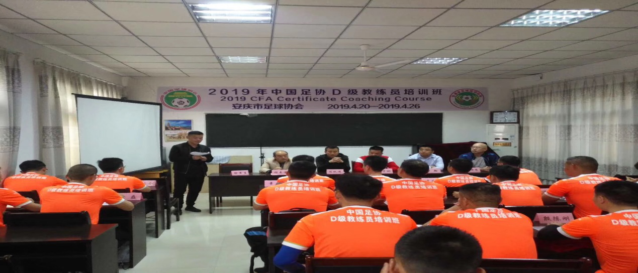 2019年4月20日—26日,2019年中国足协第六期D级足球教练员培训班在公司菱湖校区举行。beet365经理章翔、浙江大学教育公司教授成守彬、安徽省足协竞赛部长陈跃进、安庆市教体局及安庆市足球协会等相关领导和嘉宾以及24名来自全省基层足球教练员参加了开班仪式。公司项和平老师经过推荐遴选参加了此次培训。