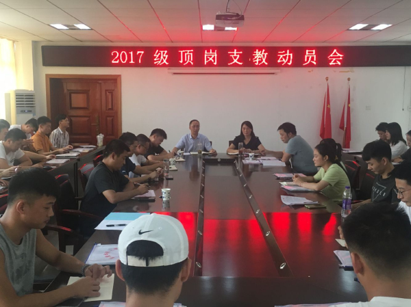9月1日中午,公司召开2017级体育教育专业顶岗支教动员大会,公司党政领导、公司教育实习实训办公室负责人、教学办负责人、辅导员老师、指导教师、2017级体育教育专业全体顶岗支教员工参加会议。