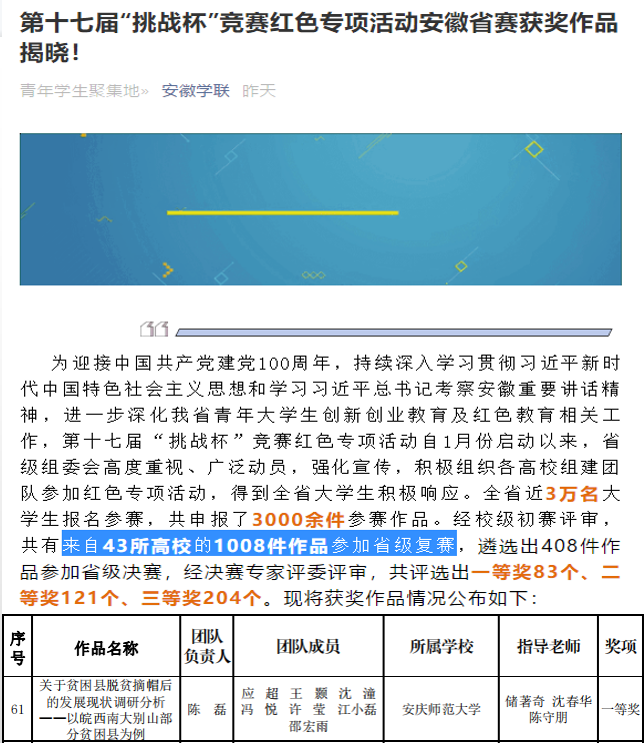 公司学子作品喜获第十七届“挑战杯”红色专项活动安徽省赛一等奖