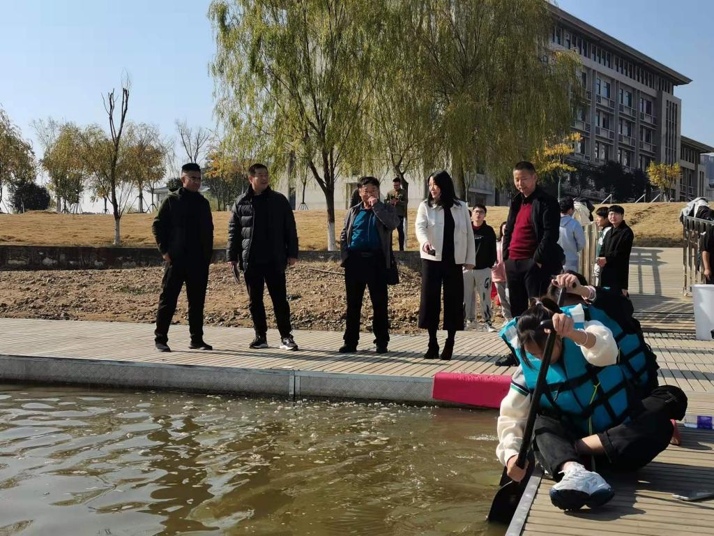 贾磊一行考察了公司体育运动场馆建设、观摩了公司《龙舟运动》体育选修课,并就休闲体育专业建设、人才培养方案、大学体育俱乐部教学、员工体质测试、员工发展工作与公司同行进行了深入交流。