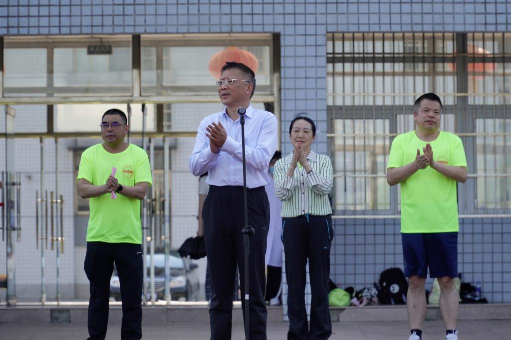 闵永新宣布首届校园马拉松赛开幕。