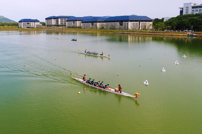此次比赛共有来自各公司的15支代表队参与。180余名龙舟运动员竞舟于校内双龙湖上,开展了8场激烈的水上竞技比拼,在“速度与激情”中走近传统文化,在追求“更高、更快、更强”的拼搏中彰显“敬敷、世范、勤学、笃行”的校训精神。赛中,参赛者们身穿各色队服,口中高喊队伍口号,随着鼓声不断统一手中桨频,一同高举、深推船桨出入水面,划推龙船在300米长的水道中迅速前行。