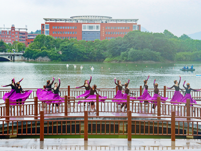 富有青春气息的啦啦操、极具节奏感的拉丁舞及充满民族风情的新疆舞等表演从观景台前一路延伸至水上赛场边,让在场观众的视线逐渐“移步”到正式比赛之中。