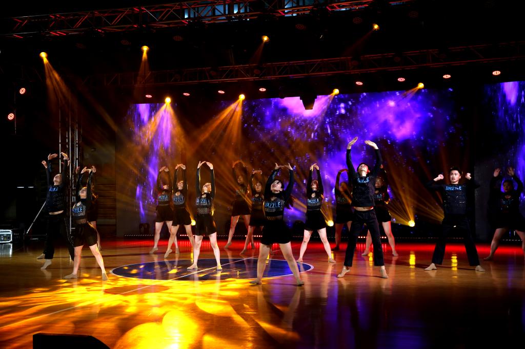 当古典遇上现代,当国风遇上爵士,会碰撞出怎样的火花?抱着这样的灵感思考,体育表演专业2019(2)班则进行“二创”升华的改编排舞。环环相扣的编舞设计和高难度动作,考验着员工们的合作默契和团队意识。在长久的练习磨合下,当《梦回敦煌》展现在舞台上时,收获了观众们的一致好评,大家纷纷拿出手机记录精彩绝伦的艺术瞬间。
