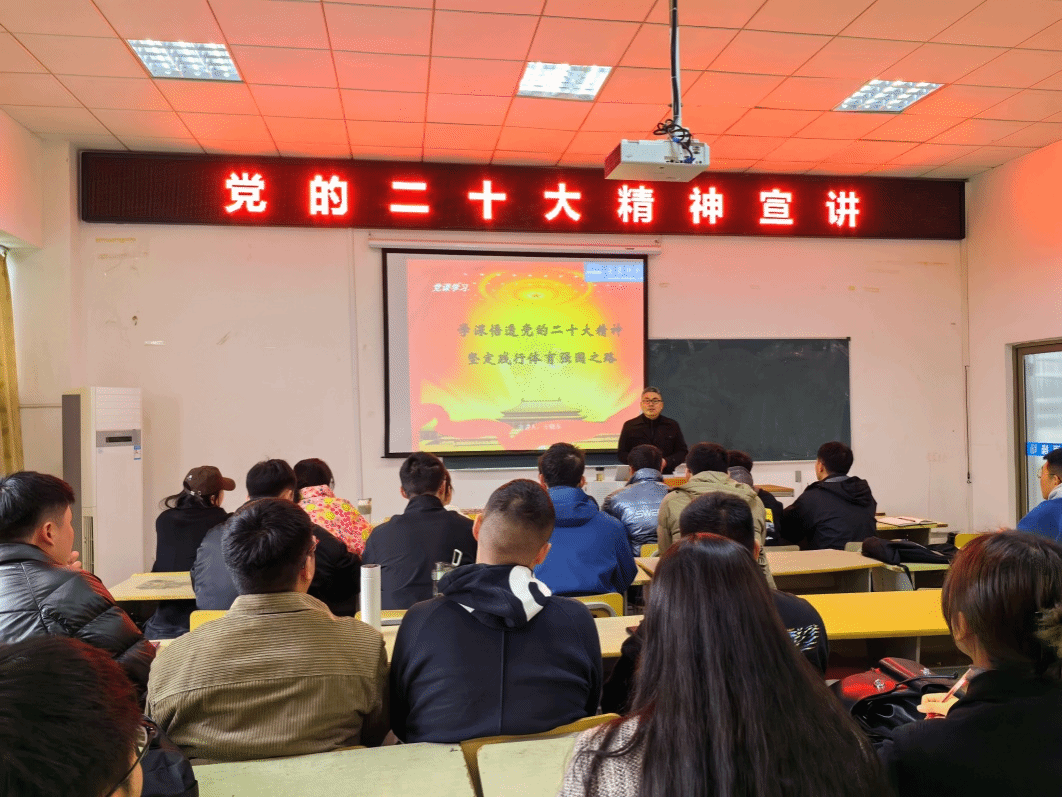 3月21日上午,beet365副经理王晓东在体育馆三楼多媒体教室给全体体育专业硕士研究生,以《学深悟透党的二十大精神,坚定践行体育强国之路》为主题的党的二十大精神宣讲。