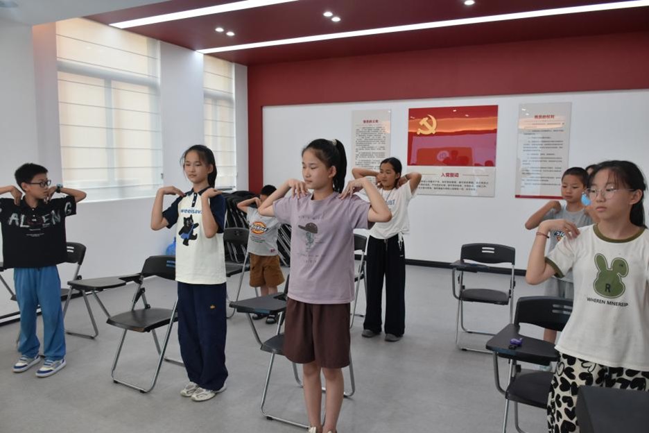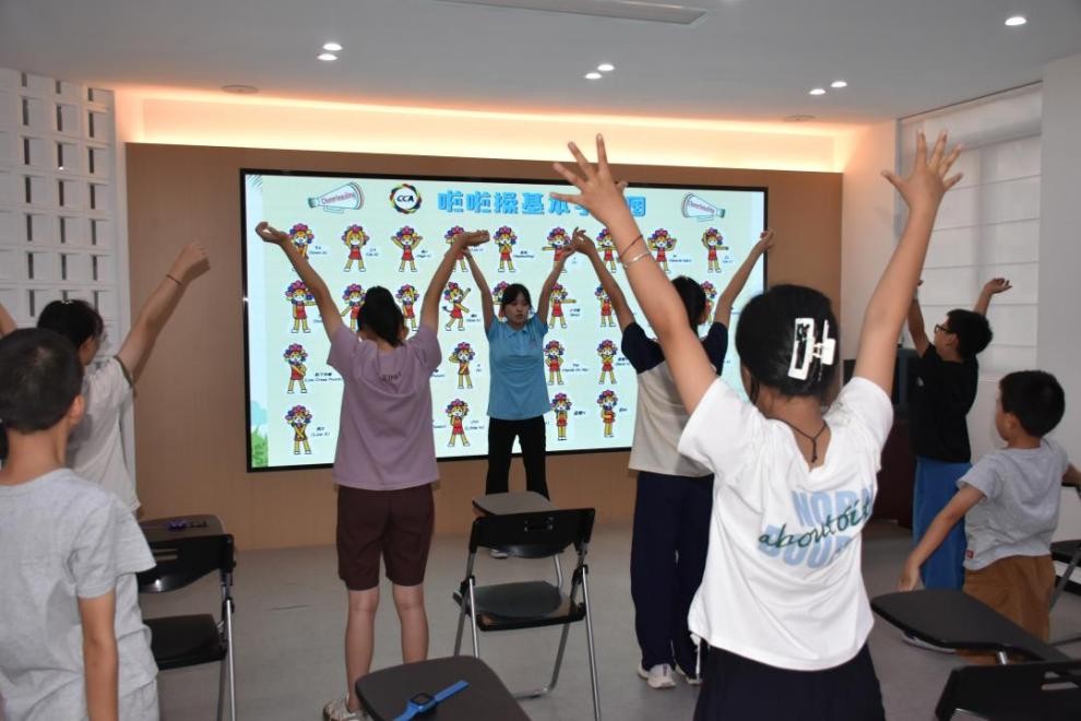 应用统计学专业 2023 级(2)班汪余强的 “妙手生花” 扭扭棒手工课,让彩色扭扭棒在孩子们手中变作花朵、手环,传统技艺与现代创意碰撞火花。燕彩蝶主导的 “童歌童趣,乐动一夏” 音乐派对,将经典童谣、欢快节奏融入 “击鼓传花” 等游戏,歌声、笑声、鼓点声汇成欢乐海洋。体育教育专业 2024 级(6)班郭梦的 “活力啦啦操,快乐动起来”,则以动感节奏与力量型肢体语言,为夏日注入青春朝气。