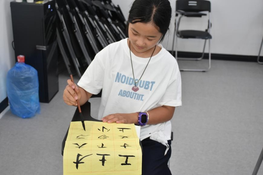 “艺教润童”的篇章,写满传统文化的当代表达与艺术之美。小学教育专业 2024 级(1)班燕彩蝶在 “笔墨奇遇记:从甲骨文到生活书法” 课堂上,带孩子们从甲骨文刻痕出发,领略汉字演变,再回归书写实践。宣纸铺展,墨香浮动,孩子们稚嫩却认真的笔触,是与千年文脉的动人对话。“燕老师说字是有生命的,我写一撇一捺时,感觉它在对我笑!”12 岁的张恩慧展示作品时,眼中满是初窥文化密码的喜悦。