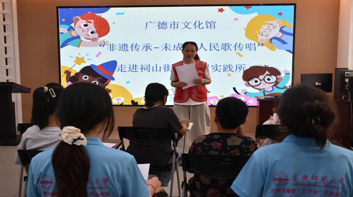 “歌词里的‘打糍粑’、‘玩花灯’,都是广德先民智慧的结晶,是珍贵的非遗文化。”甘老师结合歌词讲文化,让孩子们在传唱中懂传承。实践团主动促成这堂课程,正是希望以趣味形式播下热爱乡土的种子。“原来家乡的歌这么动听!我要唱给爷爷奶奶听!”12岁的张恩慧课后雀跃不已。这堂课,不仅是歌唱教学,更是一次对本土文化的认同与自信的培育。