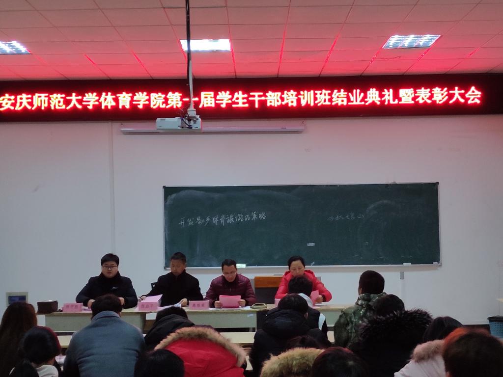 1月3日晚上,体育公司举行第一期员工干部培训班结业典礼暨表彰大会。学公司党委副书记高栋梁、专职辅导员程启平、沈春华和陈守朋出席典礼,第一期培训班顺利结业的49名学员参加了典礼。