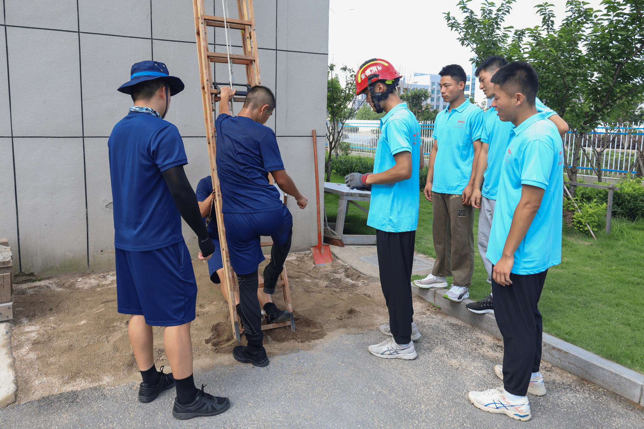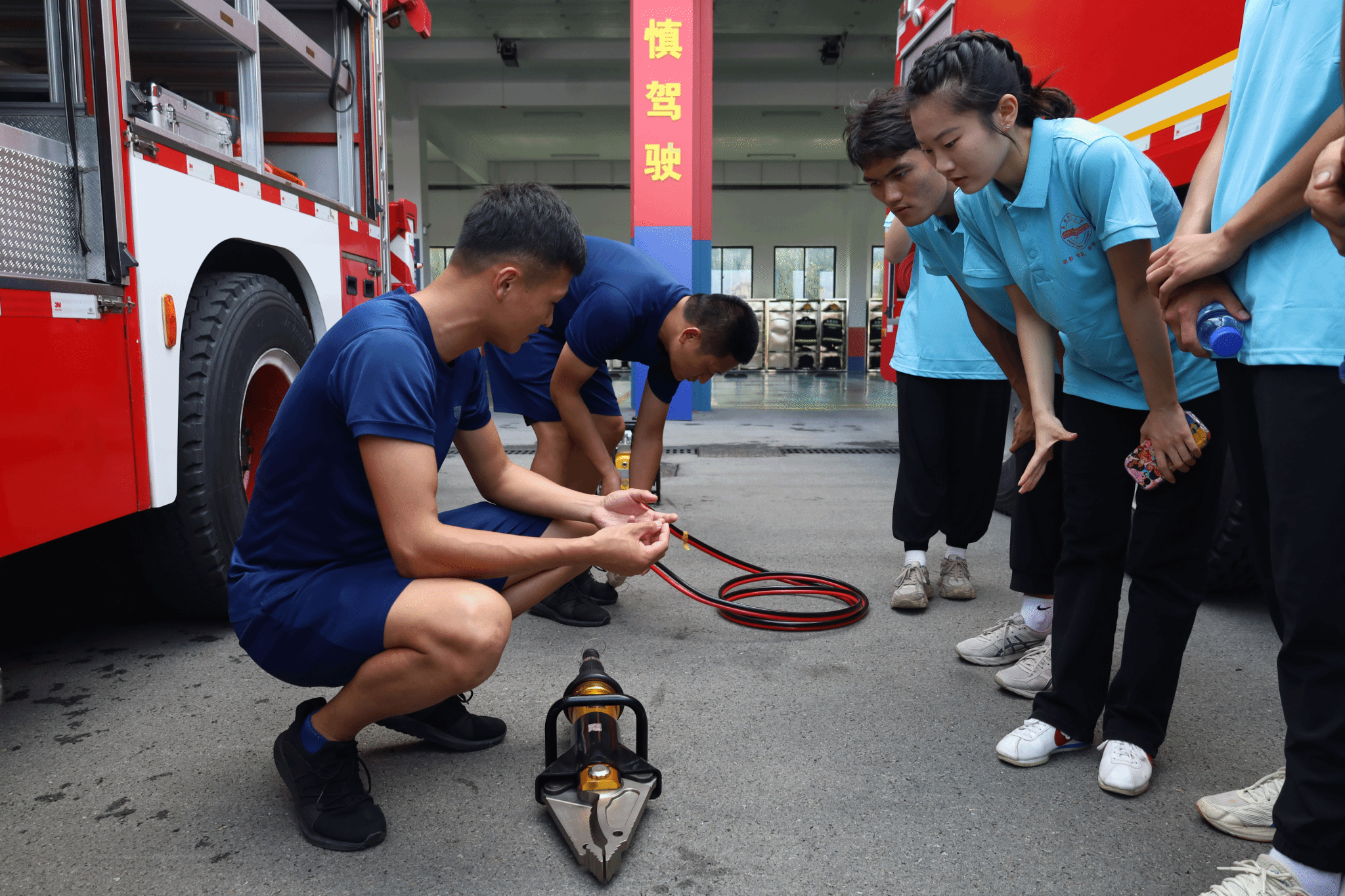 竖梯、调整、验稳、爬升,参观完毕后,消防员向大家介绍了一些常见消防设备的使用方法,之后,成员们在消防员的指导下进行训练。“观看示范觉得很简单,但自己操作时发现还是有难度的。”训练时,退伍员工、体育教育专业2021级的王顺发现昔日战友从解放军变身“逆行者”。“我并不知道他在这里工作。”王顺表示,消防员训练时的拼搏和努力让他想起了自己的军旅生活,“通过今天的体验,让我对消防员这个光荣的职业很向往。”他说。