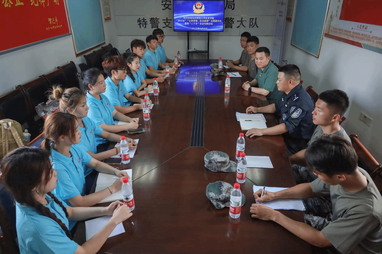 7月6日,beet365“舞动青春,志愿家乡”乡村振兴暑期社会实践团代表及“火热青春,壮志报国”暑期社会实践团共13人赴安庆市公安局特警支队菱北特警大队开展暑期实践活动。座谈会于菱北特警大队党员活动室举行,beet3652006届优秀毕业生、安庆市公安局特警支队菱北特警大队教导员叶扶苏参与座谈。