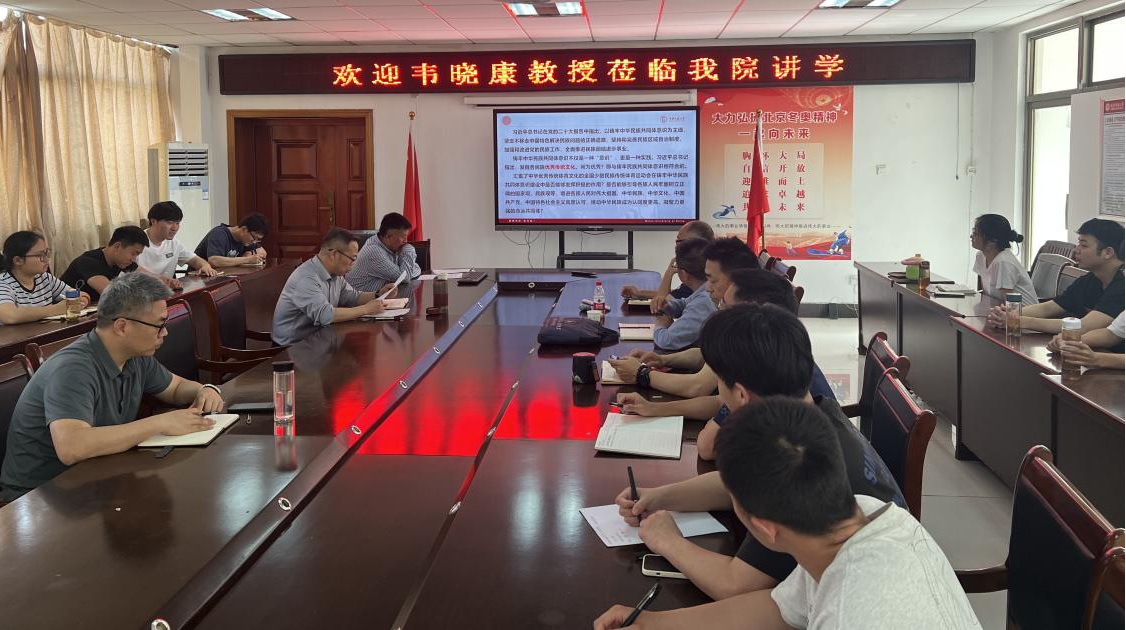 5月7日,beet365特邀中央民族大学韦晓康教授,举办了主题为《全国少数民族传统体育运动会与铸牢中华民族共同体意识》的学术讲座。beet365副经理孙明运教授主持,副经理王晓东、教师代表及研究生代表到场聆听。
