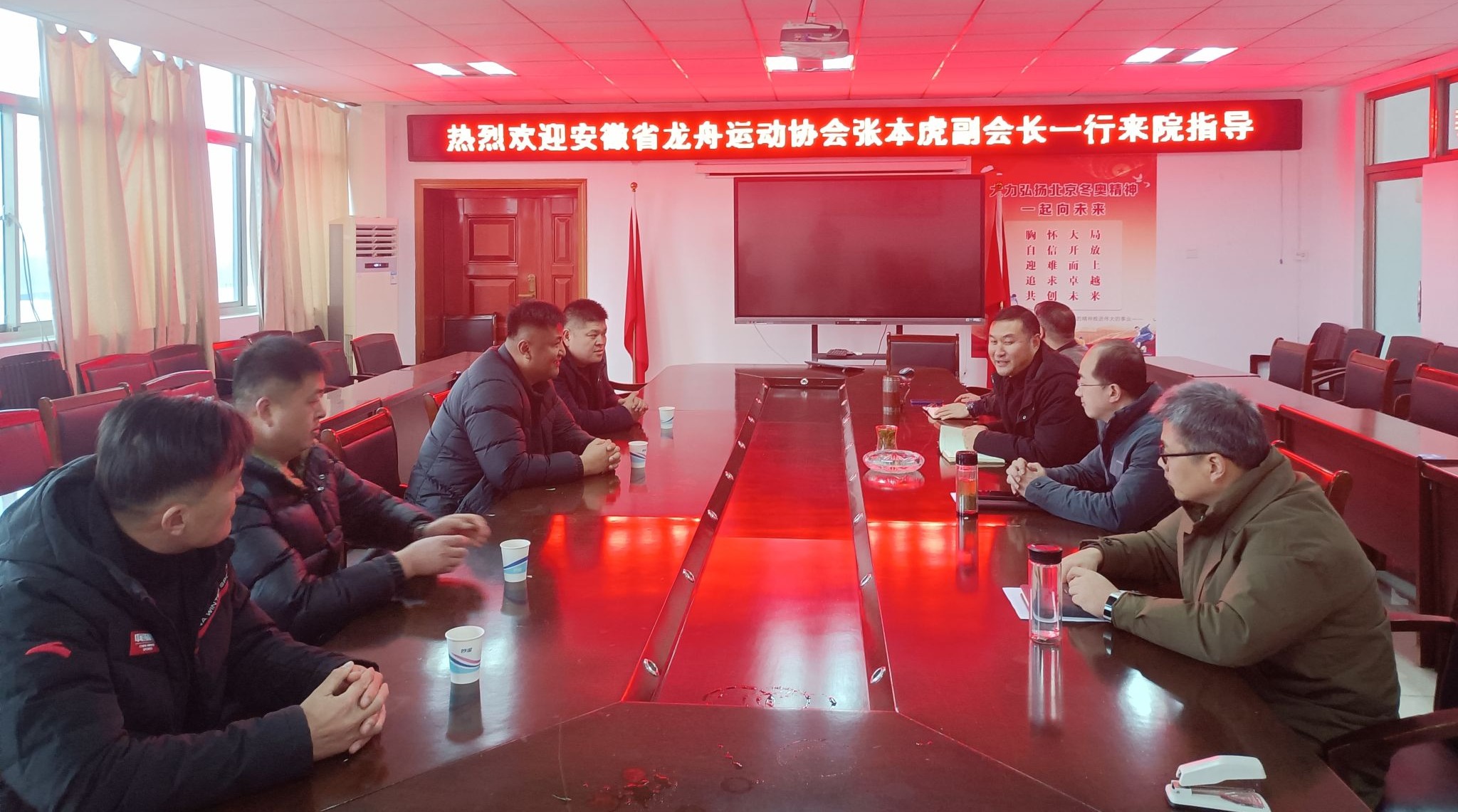 2月14日上午,安徽省龙舟运动协会副会长张本虎一行来到beet365调研并洽谈龙舟赛事工作。体育公司党政领导班子、教研室主任参与座谈并陪同调研。