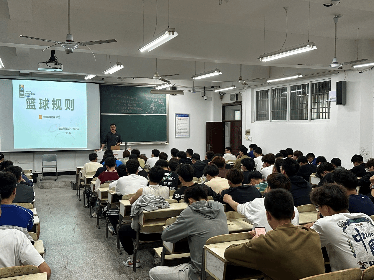4月10日晚19:00,公司宣暄副教授在教学楼A楼505教室作了题为“篮球竞赛规则与裁判法”的学术讲座。2021级和2022级体育教育专业100余名员工前来聆听了讲座。