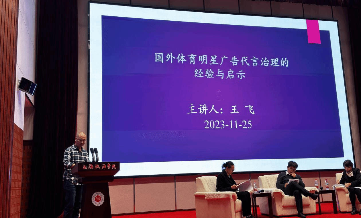 王飞博士报告的主题为“国外体育明星广告代言治理的经验与启示”,报告梳理了我国《广告法》的修订状况,结合我国体育明星广告代言的现实问题,提出了加强法律治理的必要性和紧迫性;在全面分析美英韩日等国体育明星广告代言治理经验的基础上,得出了相关启示。几位点评专家对王飞老师的报告给予了充分肯定,认为选题契合论坛主旨、问题意识明确、层次比较清晰、汇报过程流畅。