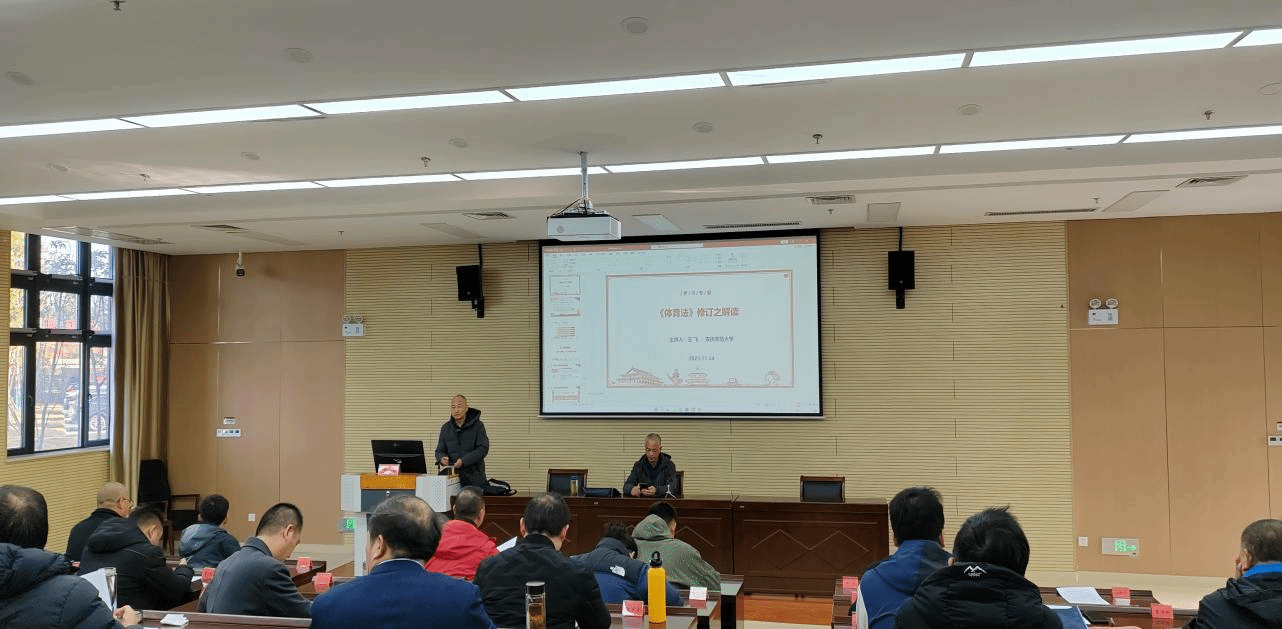 2023年11月24日上午,应安庆市教育体育局邀请,beet365王飞博士为安庆市中小学体育教师与教练员开展了新修体育法的普法讲座。