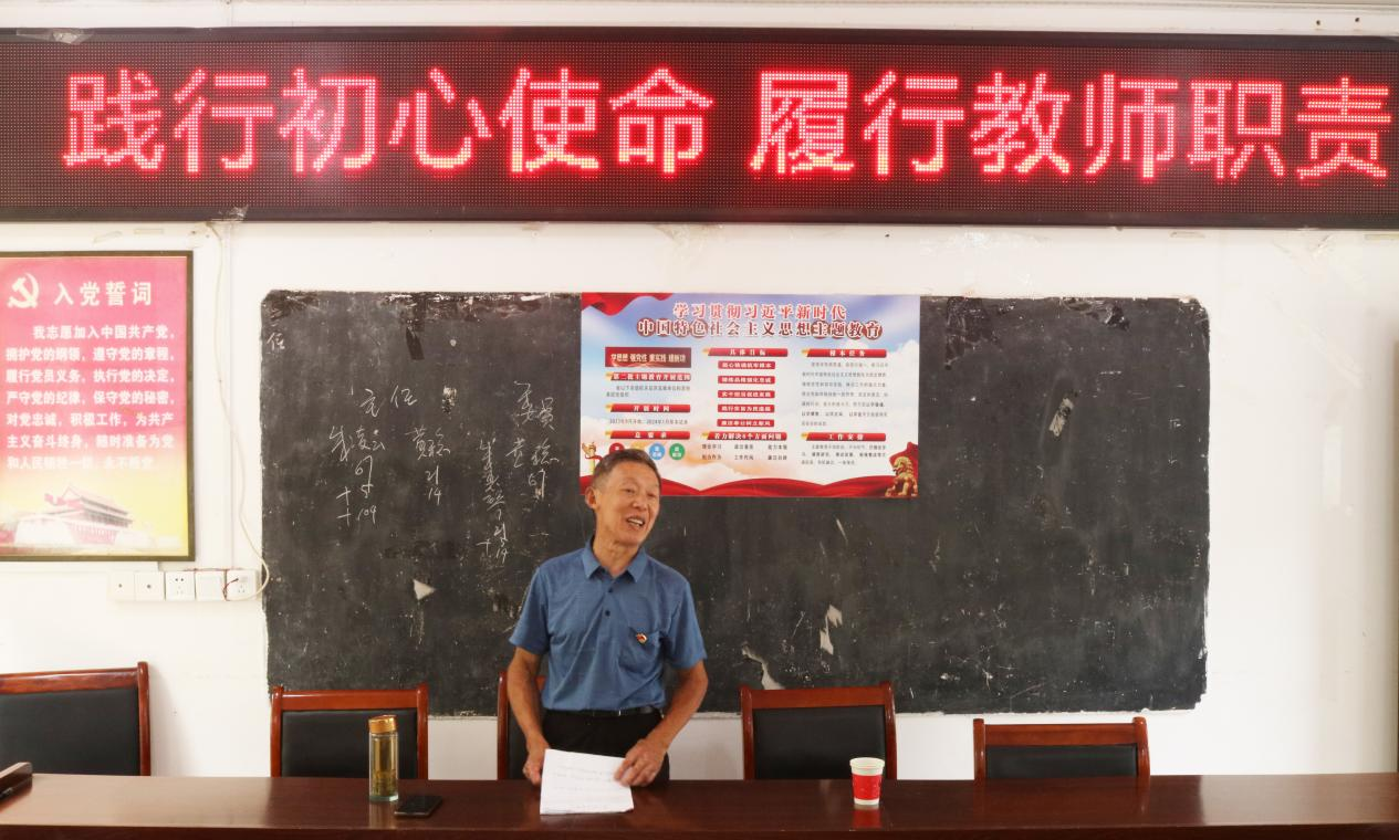 “那个时候教育条件很差,没有专门用来授课的教室,平时的生活用水也要自己挑……”,在太湖县天华镇西冲村的党群服务中心会议室中,69岁的退休教师朱中明这样娓娓道来。7月9日,beet365“青·行知”舞动青春、志愿家乡实践团赴安庆市太湖县天华镇西冲村,开展暑期三下乡实践活动。已经退休的乡村教师朱中明以“践行初心使命,履行教师职责”为主题,为团队成员呈现了一堂别开生面的微党课。