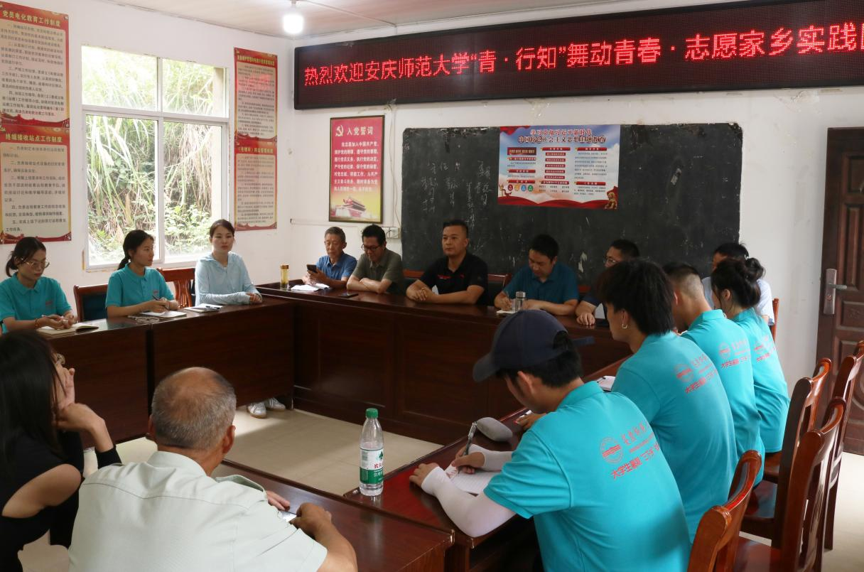 “热烈欢迎beet365‘青·行知’舞动青春、志愿家乡实践团来到西冲村,希望你们在这里可以开展好每天的活动,收获宝贵的经验”,在入村见面会上,西冲村驻村第一书记张军这样说道。实践团指导教师方芳介绍了队伍的人员构成、任务分工和具体活动内容,并对过去十年安庆师大学子在此开展“三下乡”实践所取得的成就进行了总结。随后,村委会领导就团队生活需求和活动开展形式与指导老师和队员进行了讨论和交流。