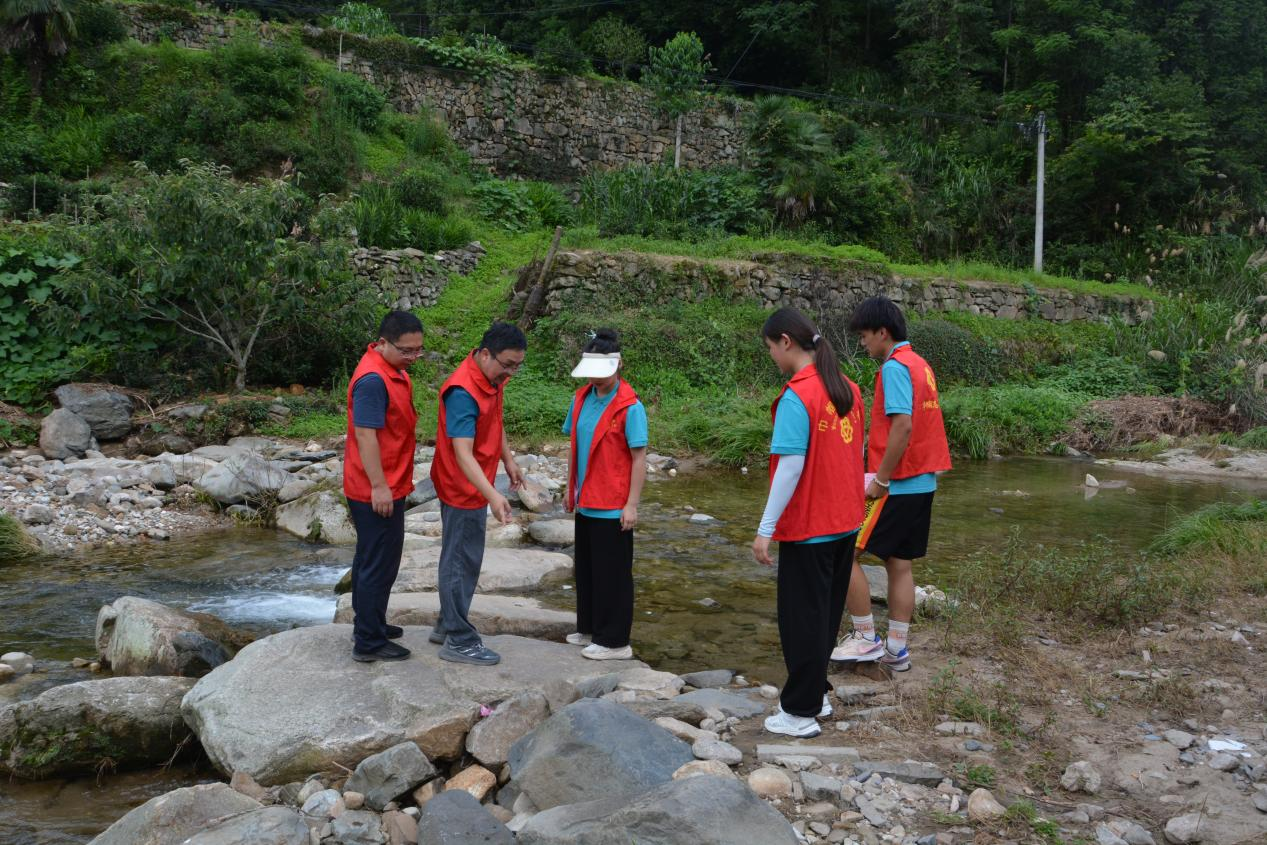 针对预防暑期高发的溺水事故,实践团队与村委会联合开展了一场特别的防溺水宣讲活动。身穿红马甲的志愿者“兵分两路”,一路志愿者手拿防溺水宣传单,用易懂的语言和生动的演示,将水上安全知识传授给村民,帮助他们提升安全意识。湍急的溪流边,另一路志愿者时而站立,时而屈身,实地勘察村中水域情况,检查岸边的防护设施和警示标识是否发生损坏。