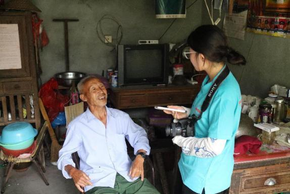 一位微微遇率着身子的老人推开一间破旧房屋半掩的门扉,一幅泛黄了的毛主席画像高高悬挂。“忘不了啊,有些岁月已经融入了骨血,伟大领袖的光辉照耀四方。”初次面对专业拍摄设备的查显之坐得端正,双手攥着翘起的衣角,目光紧紧跟随镜头。体育教育专业2023(5)班的檀滨滨打量着房屋环境说:“这是我第一次走进退伍老兵的家中,没有空调,只有摇曳的风扇,没有智能手机,只有屏幕斑驳的老式电视机,这仿佛是他生活的全部。”