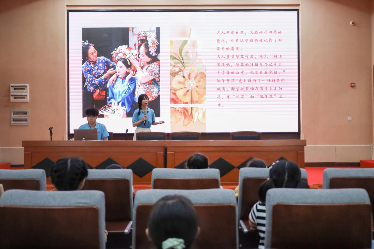 小朋友们在初见教学课件上“永不凋谢”的缠花图片时,纷纷发出“哇,太好看了吧!”惊叹。经过多次查找素材和资料后,主讲人郑媛制作出了突出缠花工艺制作方法的教学课件,形象地展示出缠花的细致步骤。“希望能通过这种简单直白的方式,和小朋友们以花为名,共赴花事。”郑媛说。