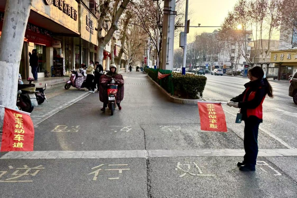 亳州市蒙城县金瑞百货大楼前,运动康复专业2024级本科生王雯雯在1月19日至21日投身交通志愿服务。她累计开展志愿指挥交通活动17次,身着红色马甲,手持指挥旗,在城区交通繁忙的路口协助交警疏导车辆,引导车辆按规定车道行驶,有效缓解了交通压力,保障了家乡交通秩序的顺畅。