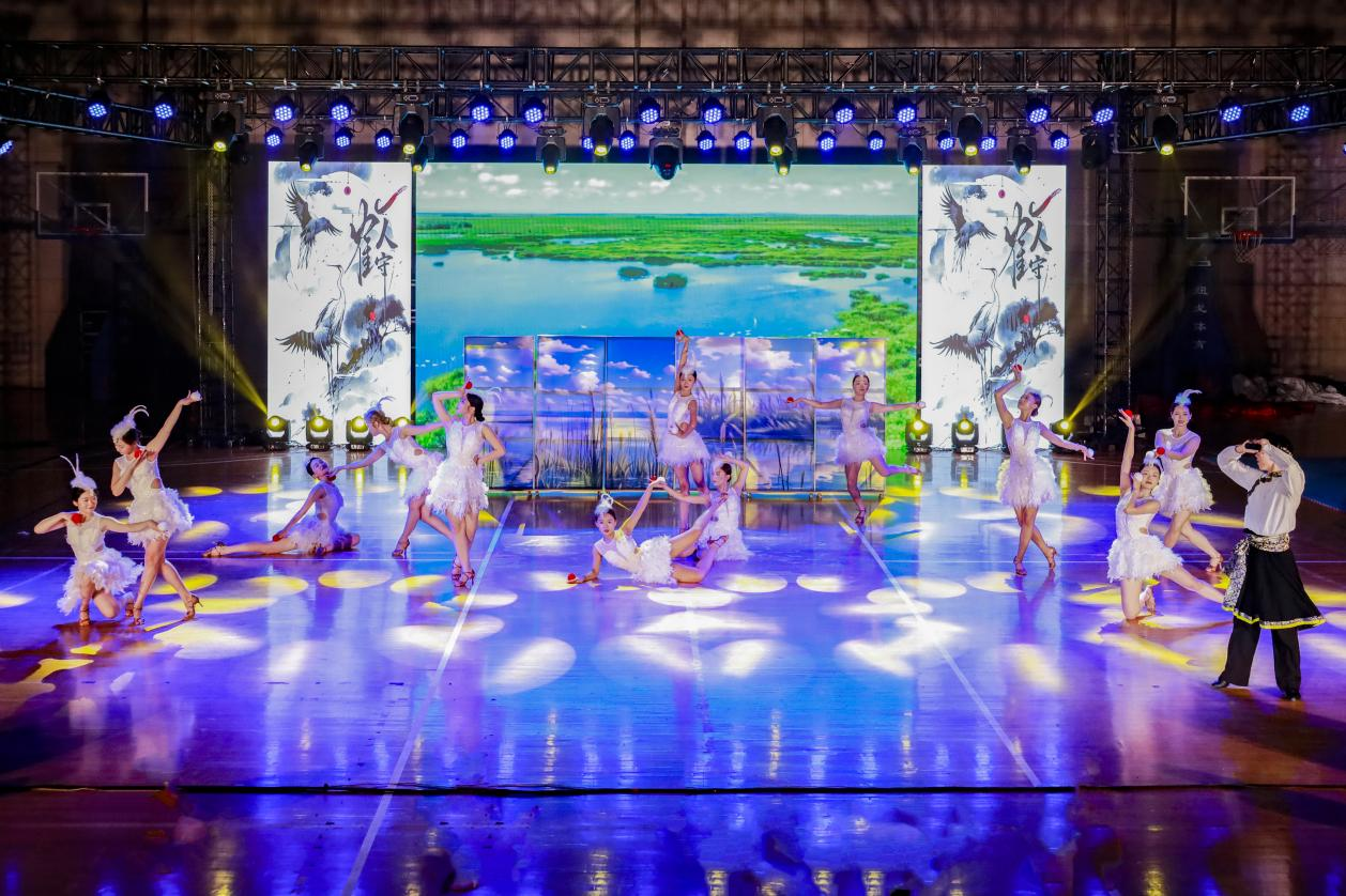 设计舞蹈架构、打磨动作细节、凝练情感表达……为通过肢体语言传递高原守鹤人的坚守与传承,表演(体育艺术表演方向)专业2022(2)班郭蔓月介绍,团队数月前便投身于《守鹤人》的创作筹备。“我们将黑颈鹤振翅的形态融入舞蹈语汇,用艺术化的肢体叙事诠释两代人的信念传承。”郭蔓月表示,这支原创舞蹈深度挖掘守鹤人仁青夺吉的故事内核,将其从抗拒到坚守的心路历程转化为极具张力的舞蹈语言。“希望观众能透过我们的步伐与姿态,感受到高原守鹤人跨越十八载的生命温度与精神力量。”
